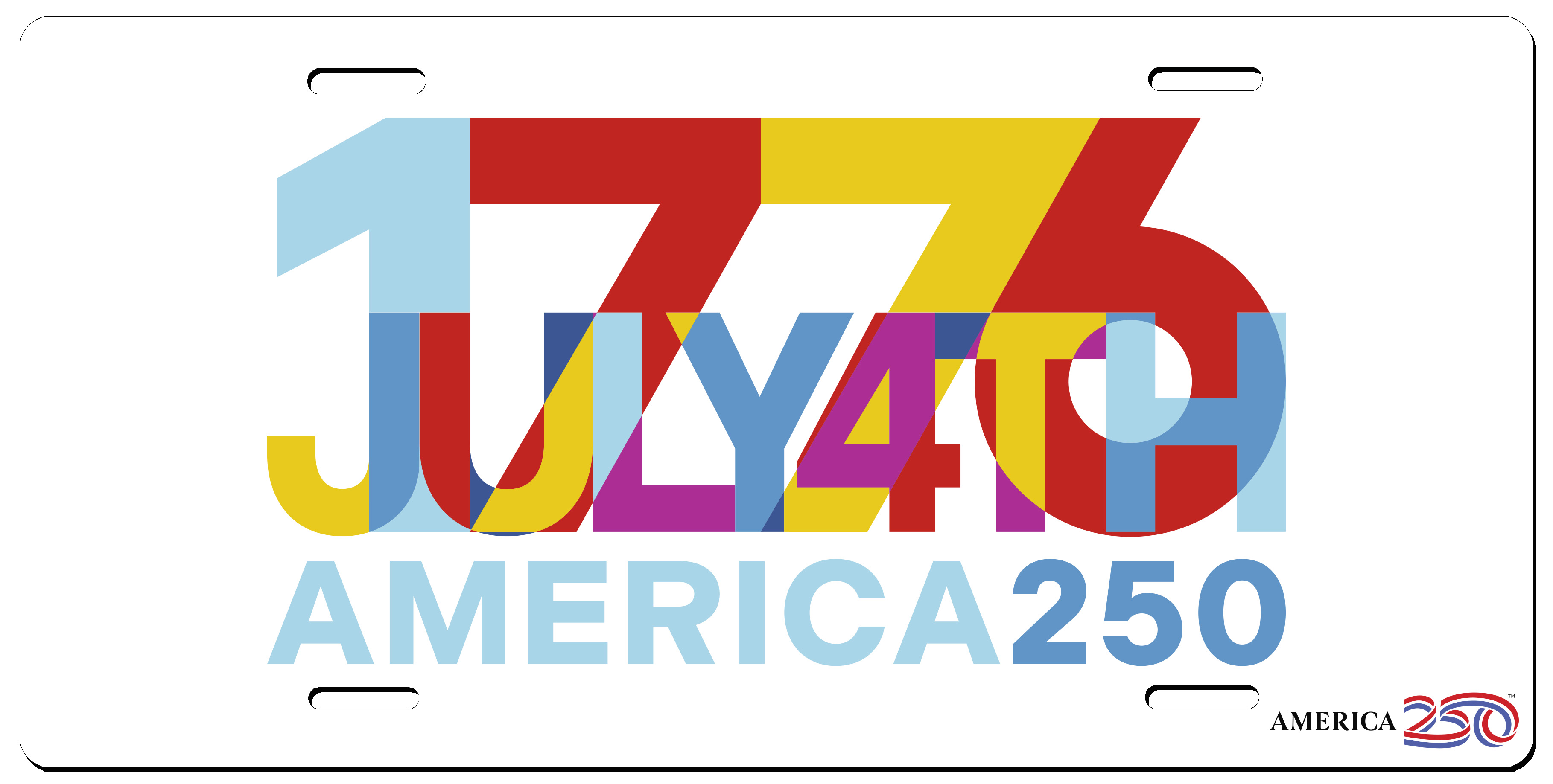 Take your patriotism to the streets, literally, with this unique, attractive license plate! Made in our shops, this high-quality, UV and weather resistant, 6"x12" glossy plate is the perfect addition to any vehicle and makes a wonderful gift! This license plate features a the date July 4th, 1776.