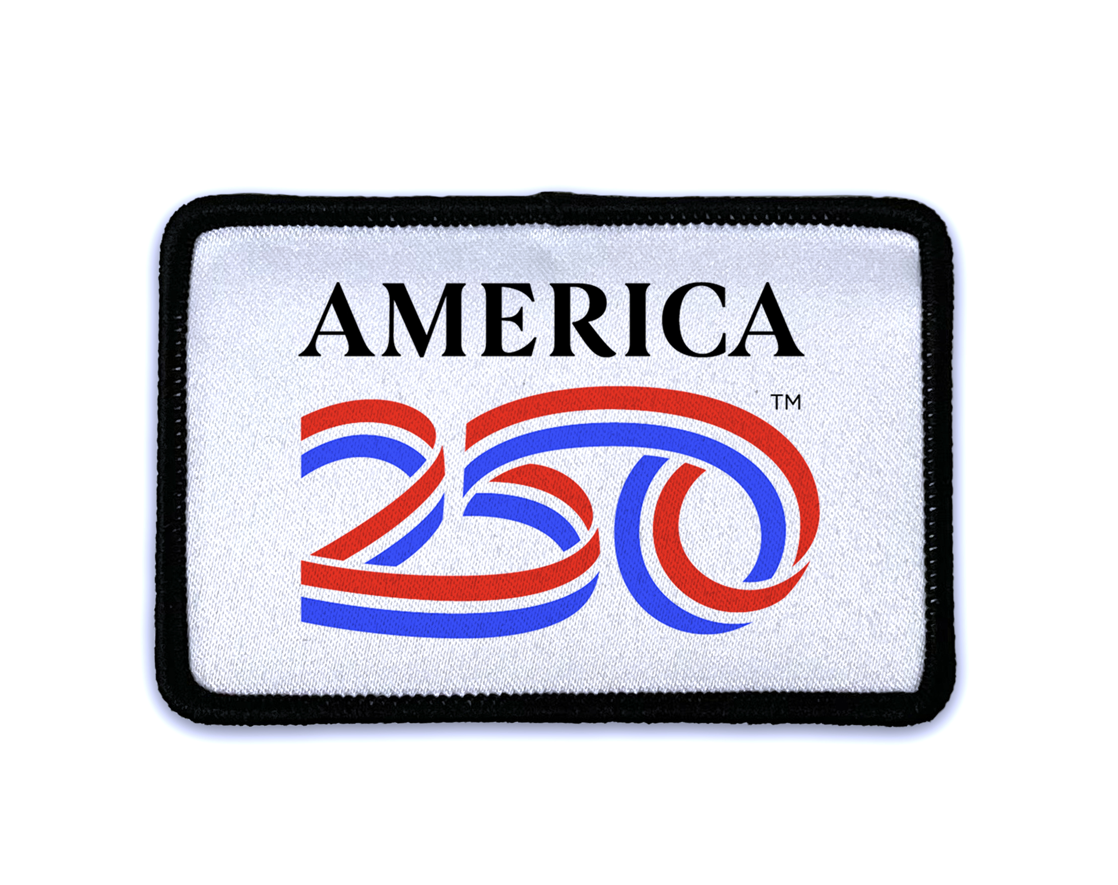 This iron-on patch features the America 250 logo on a white background. Our new iron-on patches are great for a great number of uses, including jackets, backpacks, hats, and more! Smooth, shining polyester combines with our unique printing process to create bold, vibrant colors that stand out in any outfit.  This patch is 3.00x2.00 inches. Comes with instructions for care and application.