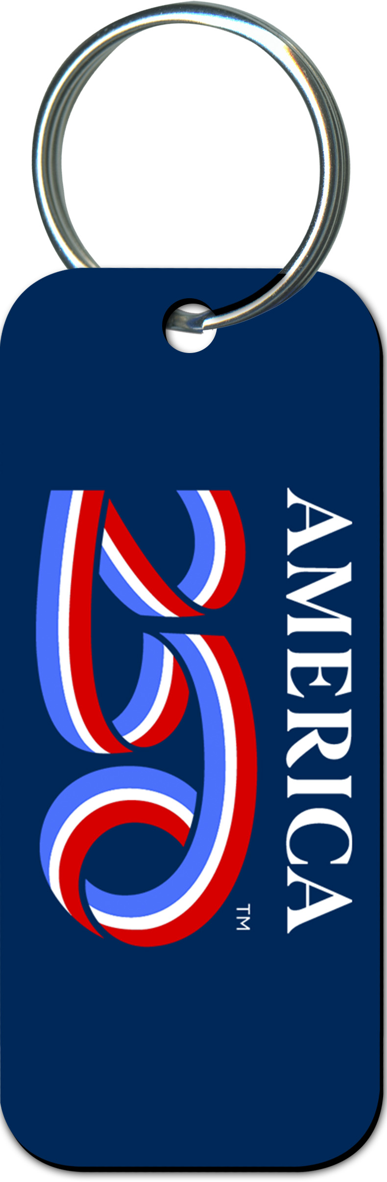 Proudly display your patriotism everywhere you go with this unique, glossy keychain! This high-quality, beautiful gift makes a great addition to your keychain and the perfect gift for the drivers in your circle of family and friends! This keychain features the America250™ logo on a dark blue background.