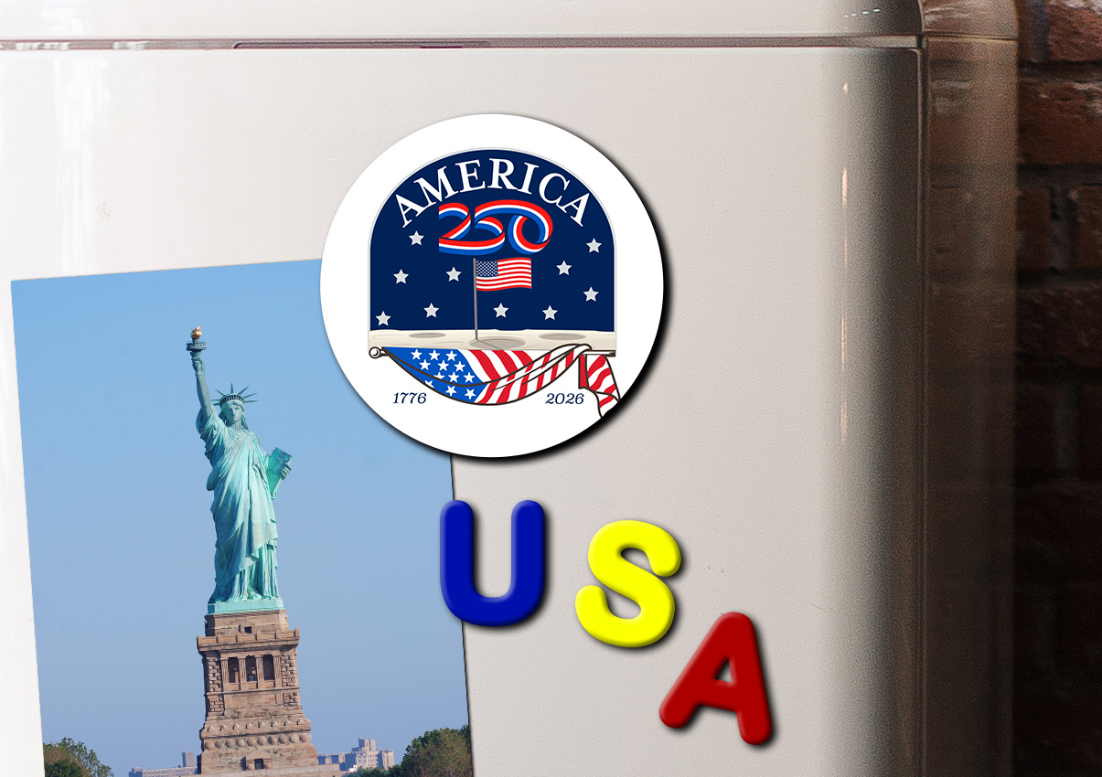Show off your patriotism on your refrigerator, filing cabinet, or workspace with this glossy, durable magnet. This Magnet features an illustration of the American flag on the moon, with text that reads "America 250". ( MAGR-AM250A-MOON ) The AMERICA 250® word mark and logo are trademarks of the U.S. Semiquincentennial Commission and are used by Nelson Enterprises under license.