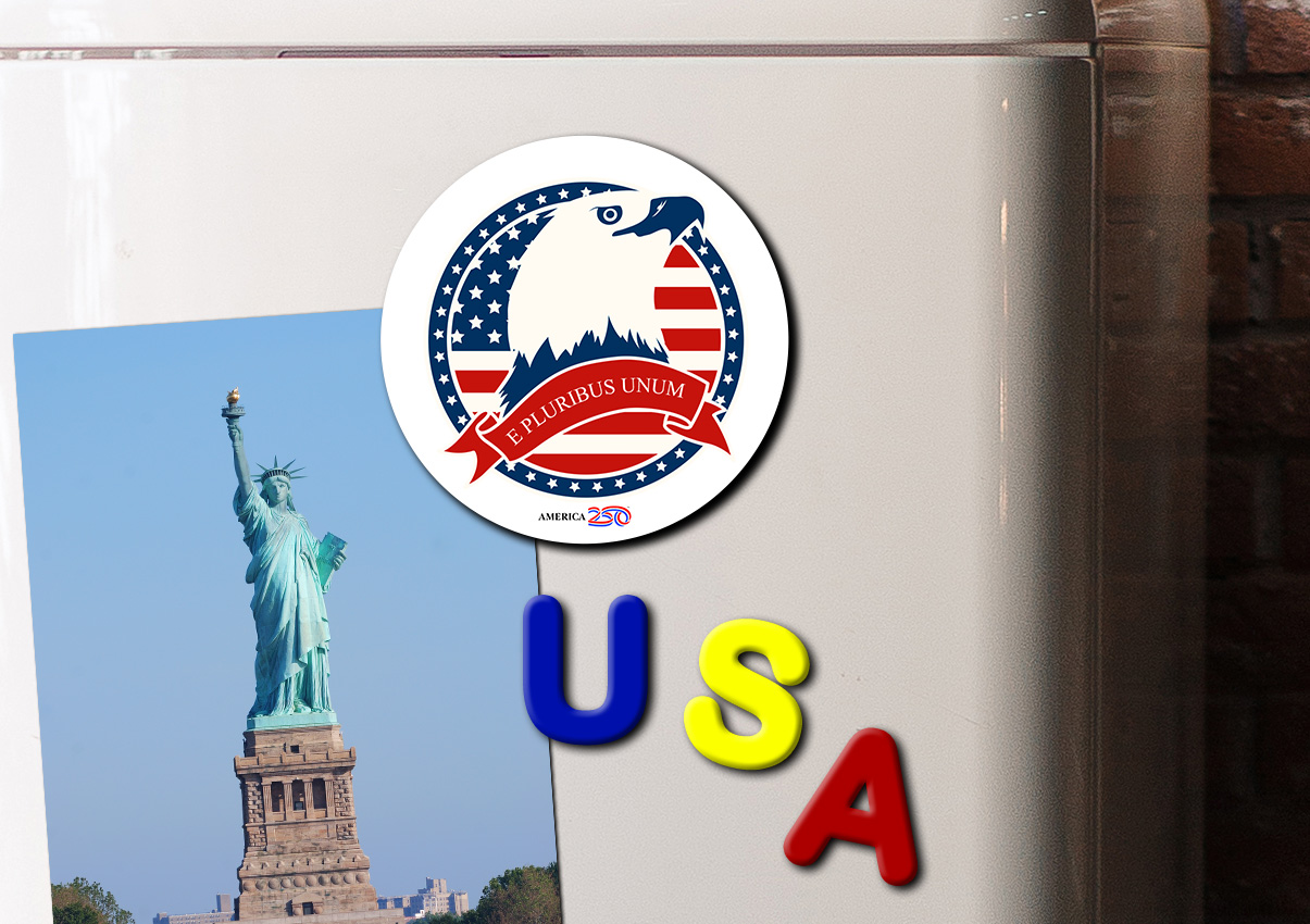 Show off your patriotism on your refrigerator, filing cabinet, or workspace with this glossy, durable magnet. This Magnet features an illustration of an eagle with the American flag and text that reads "E Pluribus Unum." ( MAGR-PATRIOTIC8 ) The AMERICA 250® word mark and logo are trademarks of the U.S. Semiquincentennial Commission and are used by Nelson Enterprises under license.
