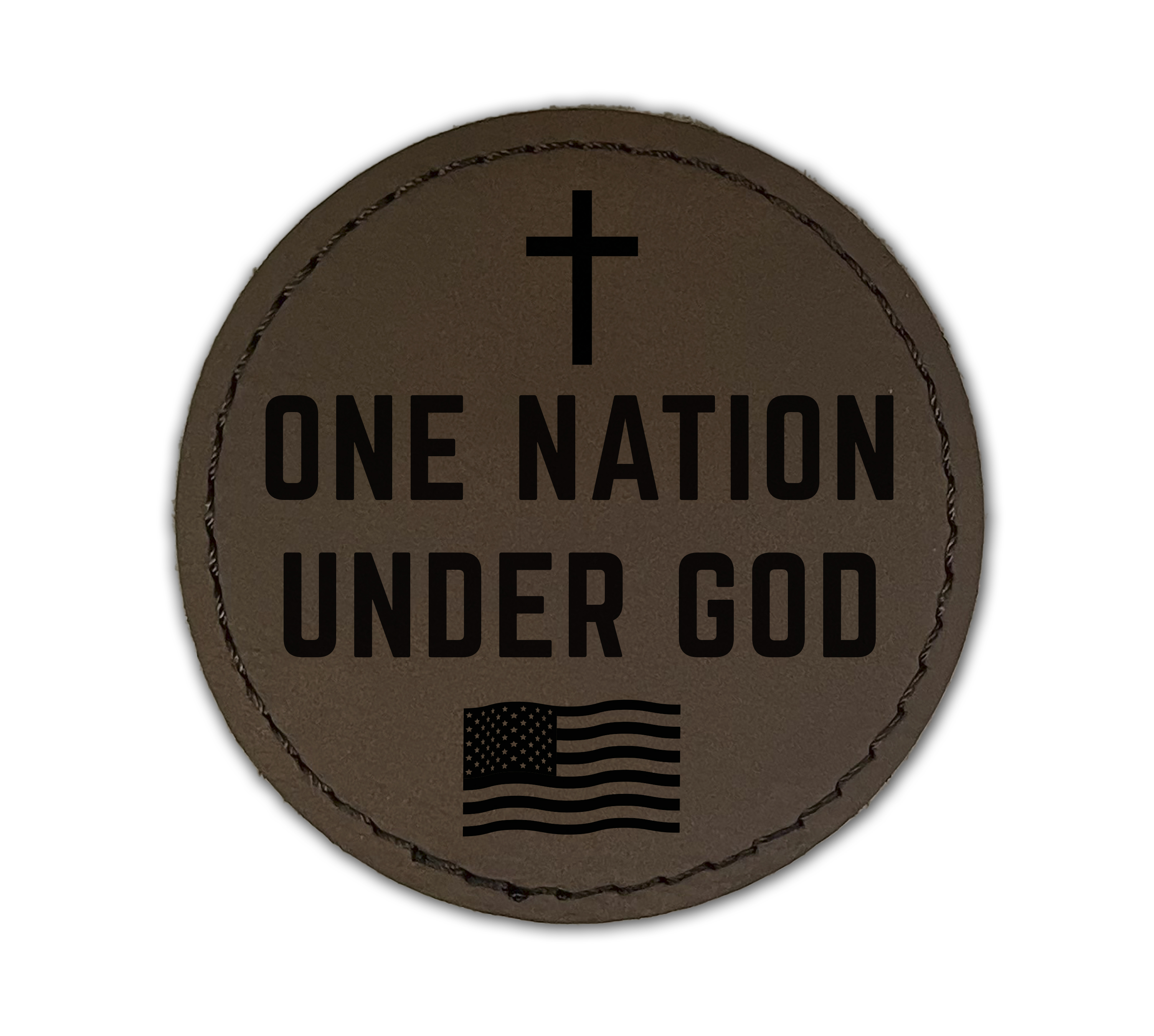 This iron-on patch features text that says "One nation under God" between a cross and the American flag. Our new iron-on patches are great for a great number of uses, including jackets, backpacks, hats, and more! Smooth, shining polyester combines with our unique printing process to create bold, vibrant colors that stand out in any outfit. This patch is 2.50x2.50 inches. Comes with instructions for care and application.