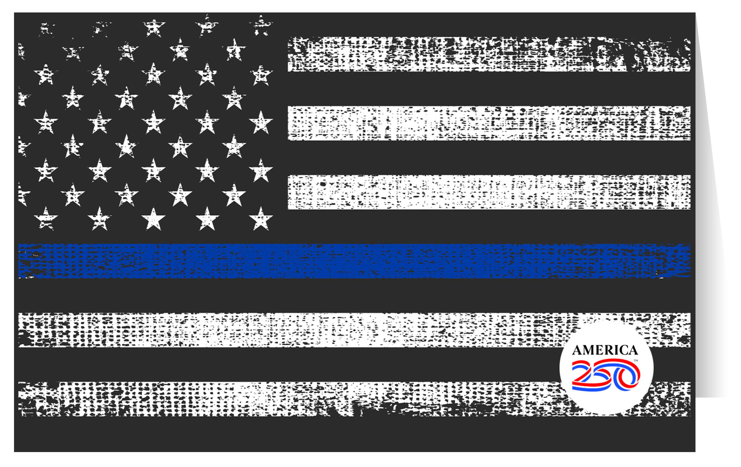 Send thanks, congratulations, Notes, and more to friends and family with these Patriotic Note cards! The front features the Thin Blue Line flag, which represents support for Police Officers. The inside is blank. Printed on heavy cardstock, this 4.25"x5.5" card comes with envelopes, and can be bought individually or in bundles of 6.  ( STCA-AMERICAN9 ) The AMERICA 250® word mark and logo are trademarks of the U.S. Semiquincentennial Commission and are used by Nelson Enterprises under license.
