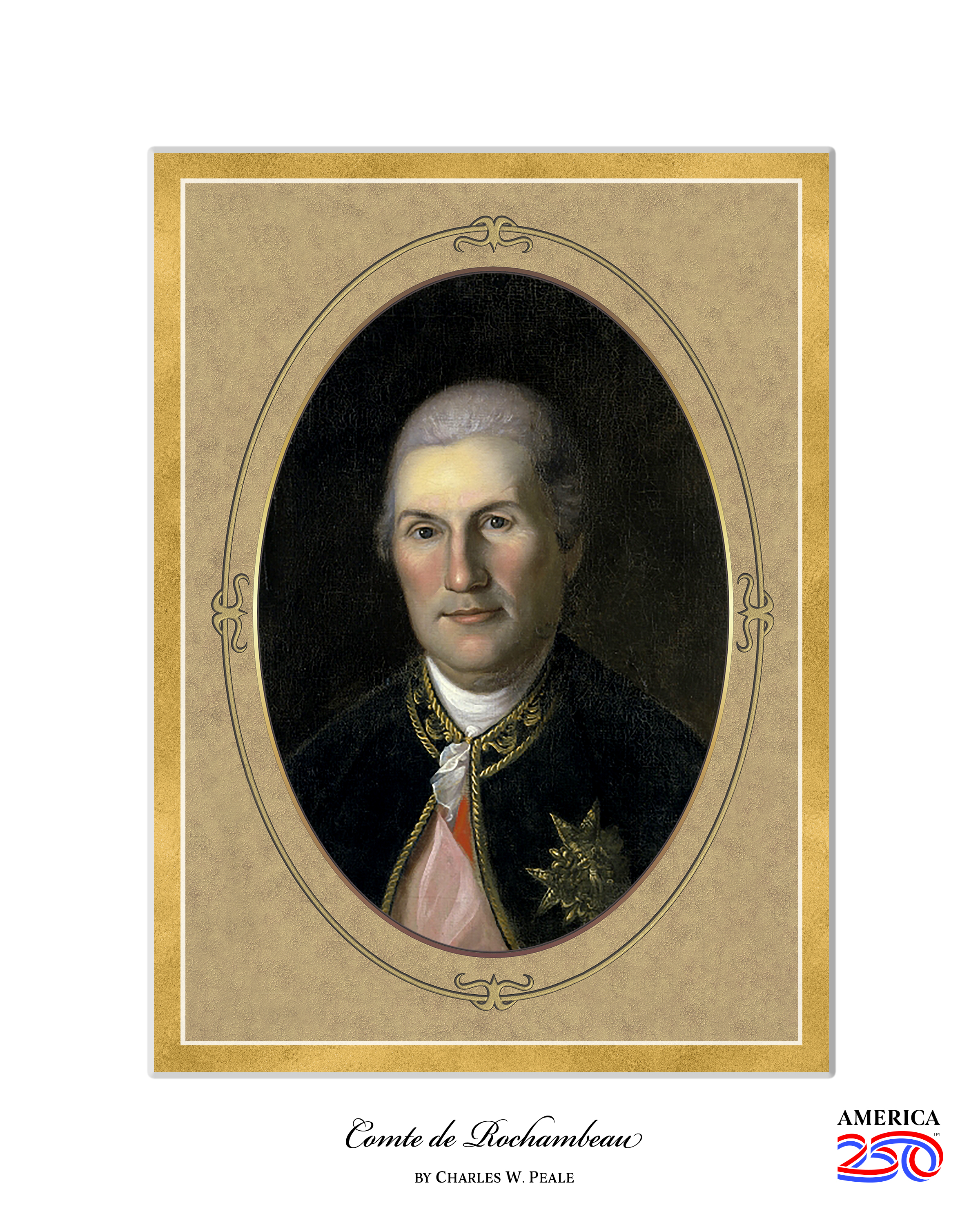 Show your patriotism in any office, classroom, or living space with this patriotic print! This image comes as a fine art print with a white border. This print features a painting of Comte de Rochambeau.