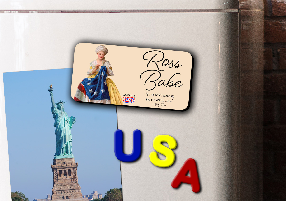 Show off your patriotism on your refrigerator, filing cabinet, or workspace with this glossy, durable magnet. This Magnet features an illustration of Betsy Ross and text that reads "Ross Babe".