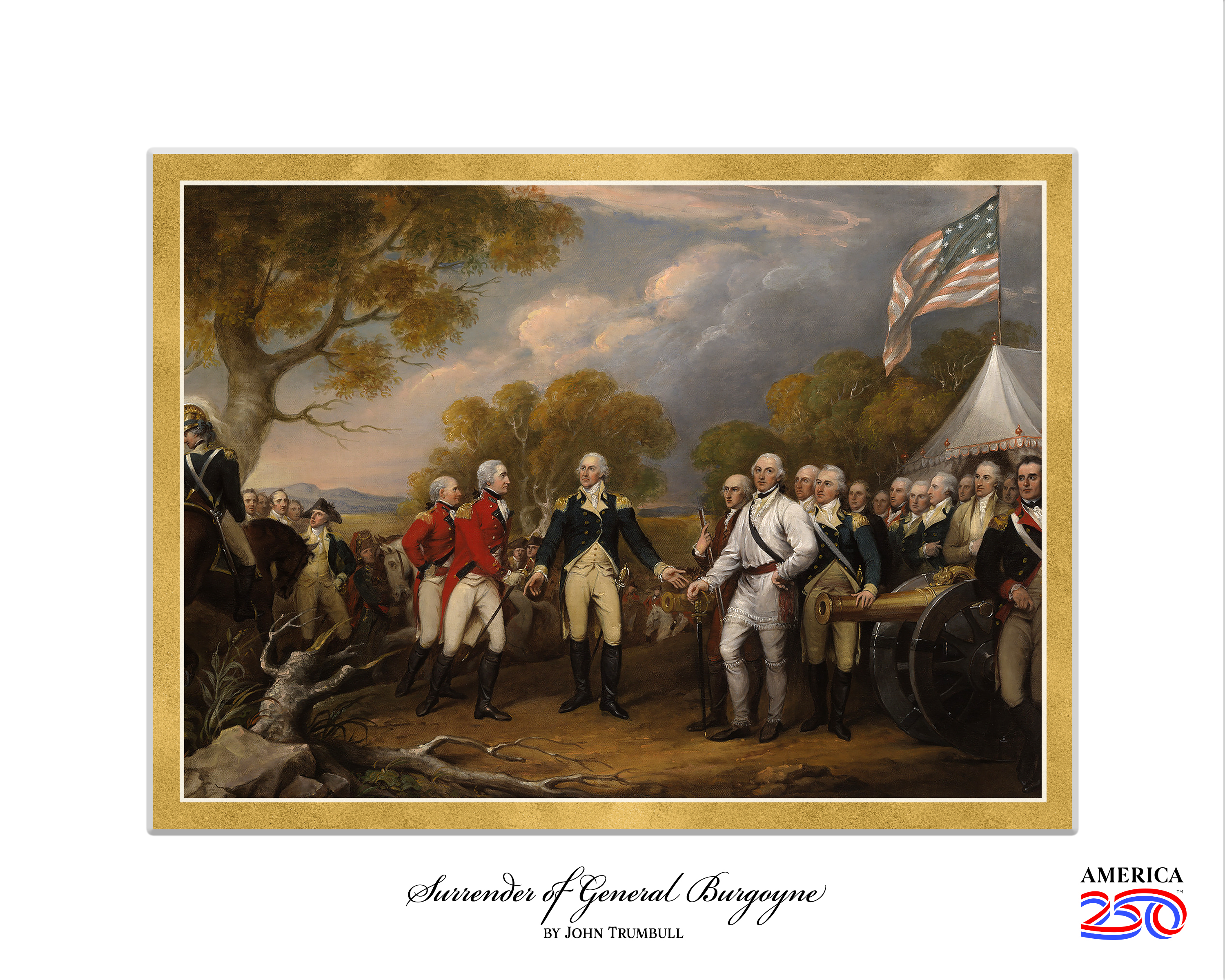 Show your patriotism in any office, classroom, or living space with this patriotic print! This image comes as a fine art print with a white border. This print features the painting "Surrender of General Burgoyne."