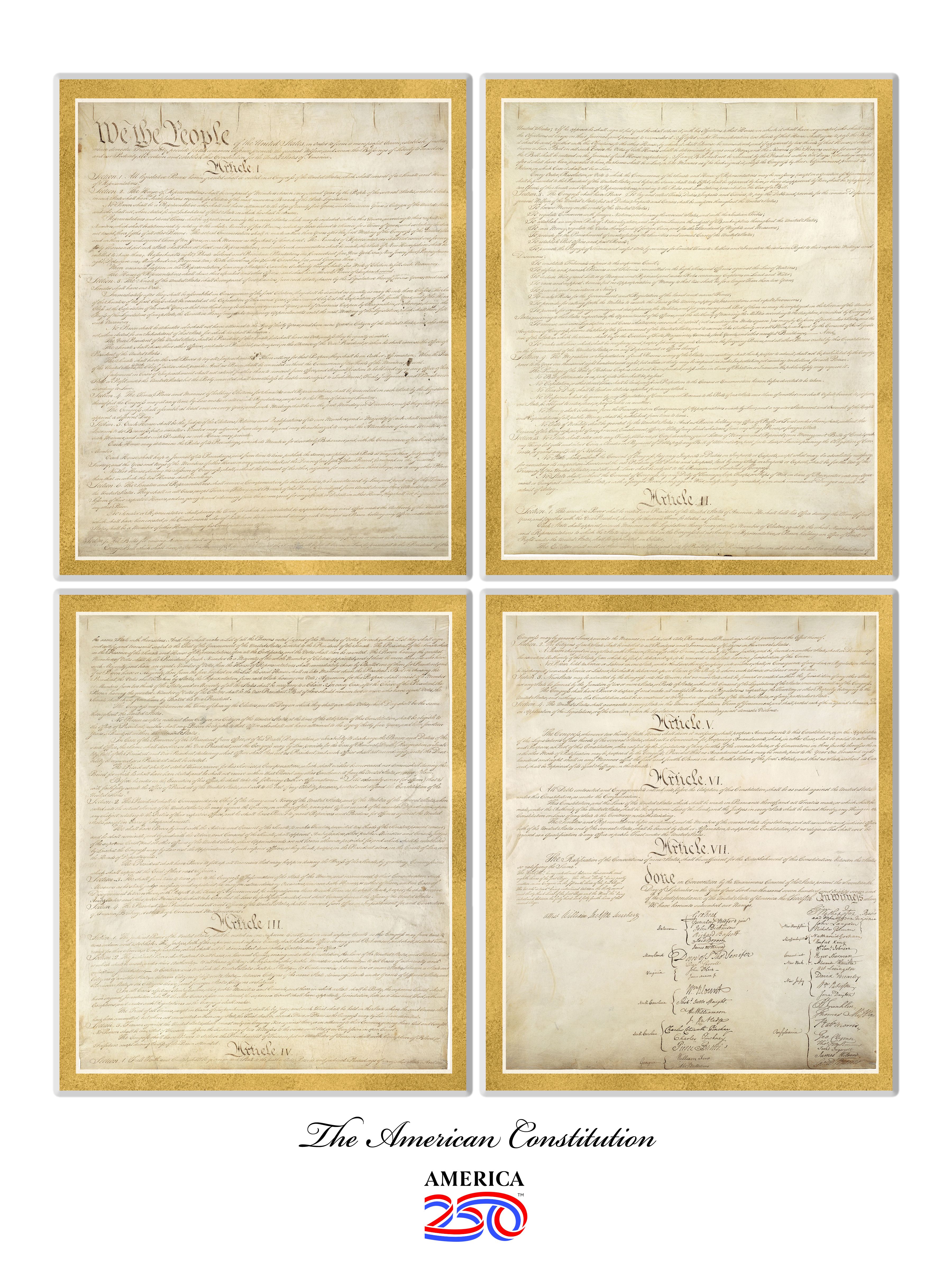 Show your patriotism in any office, classroom, or living space with this patriotic print! This image comes as a fine art print with a white border. This print features the four pages of the American Constitution.