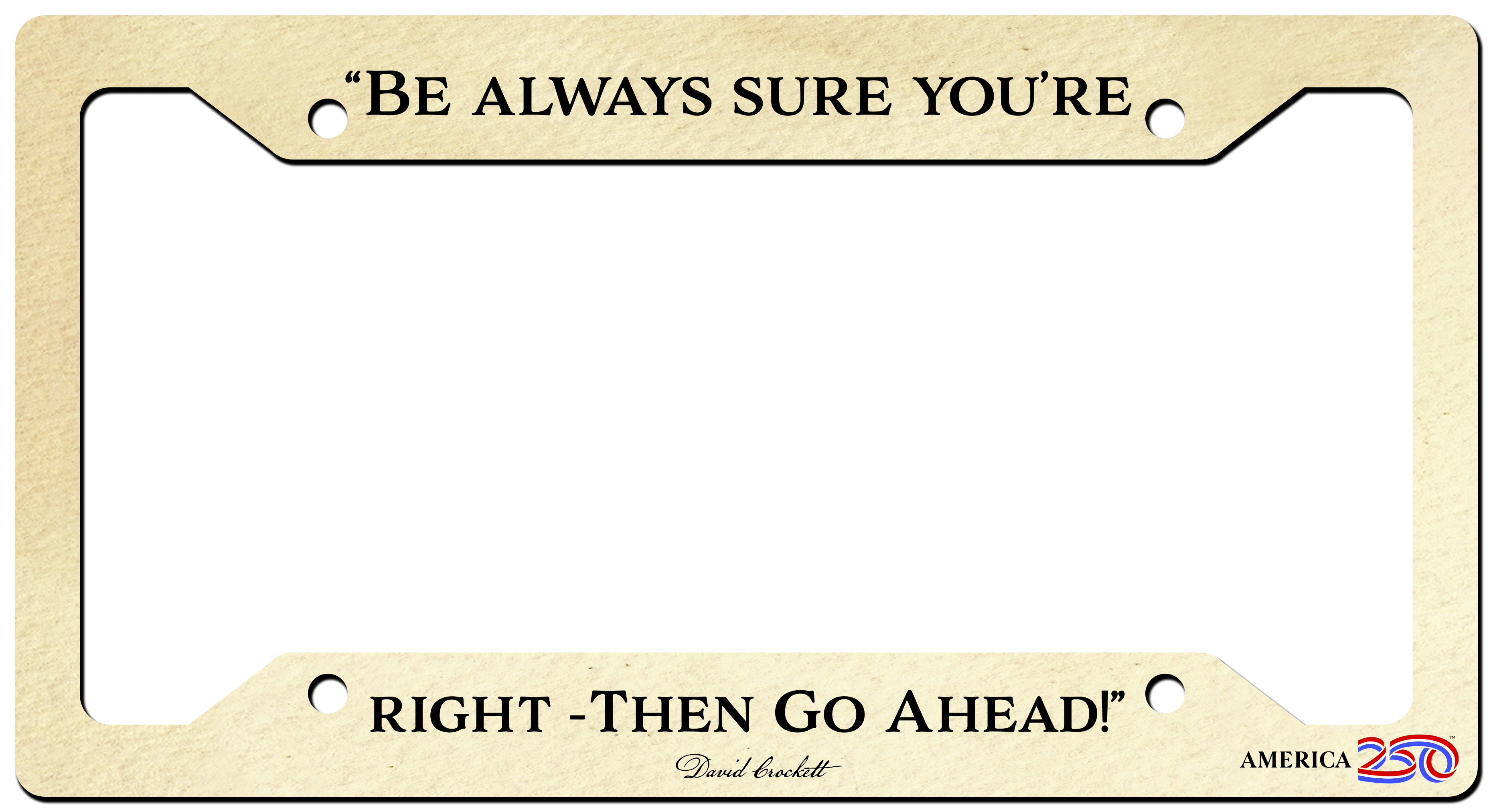 Made in our shops, this high-quality, UV and weather resistant, 6"x12" glossy frame is the perfect addition to any vehicle, while still displaying the license plate and tags!  ( LPPF-AMERICAN79 ) The AMERICA 250® word mark and logo are trademarks of the U.S. Semiquincentennial Commission and are used by Nelson Enterprises under license.