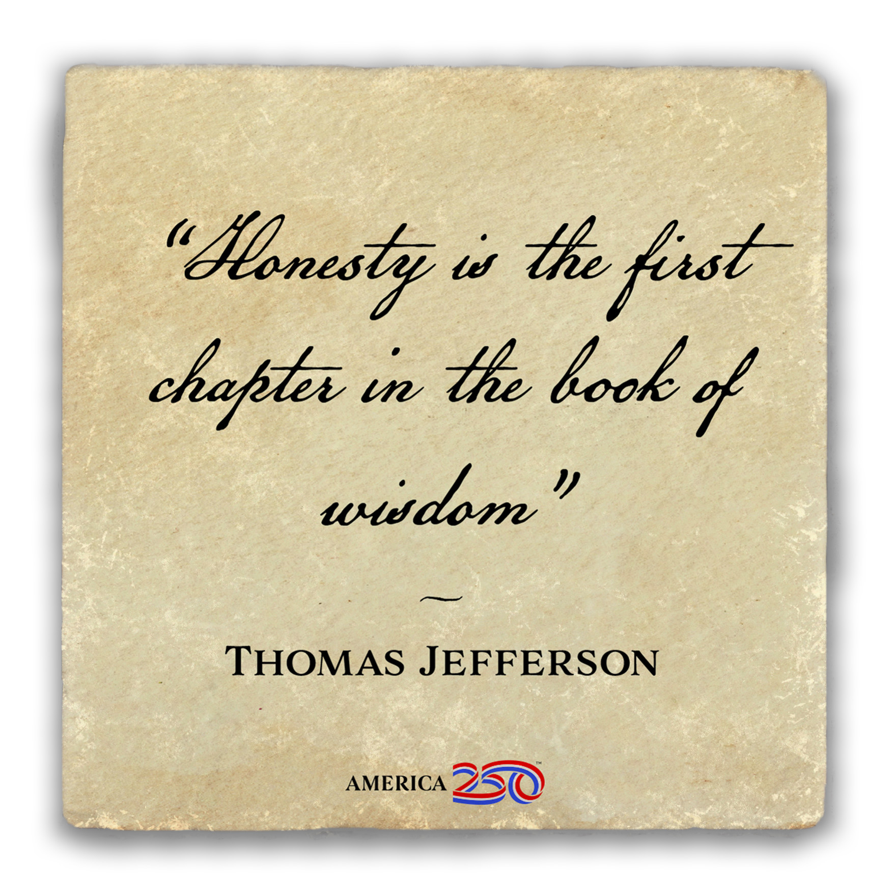 This tumbled stone coaster features the quote from Thomas Jefferson: "Honesty is the first chapter in the book of wisdom".