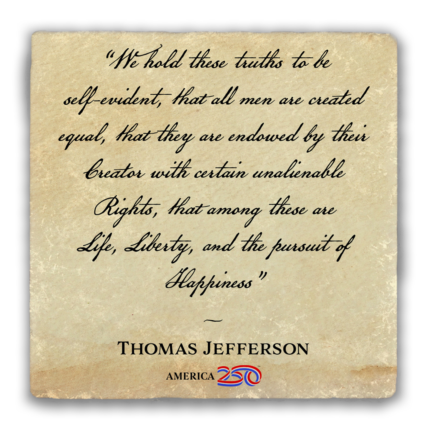 This tumbled stone coaster features the quote from Thomas Jefferson: "We hold these truths to be self evident, that all men are created equal, that they are endowed by their Creator with certain unalienable Rights, that among these are Life, Liberty, and the pursuit of Happiness.".