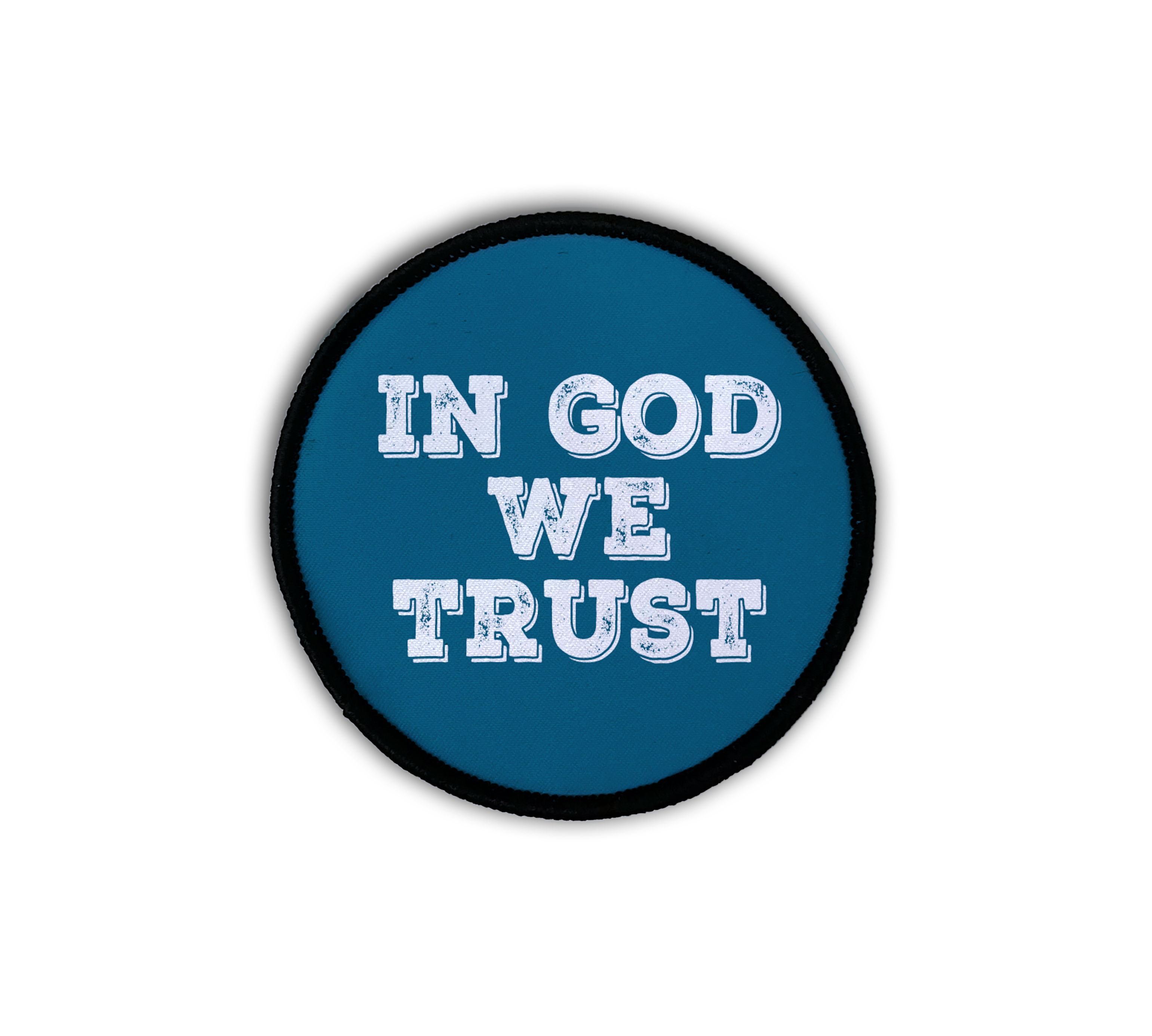 This iron-on patch features white text that reads "In God we trust" over a bright blue background. Our new iron-on patches are great for a great number of uses, including jackets, backpacks, hats, and more! Smooth, shining polyester combines with our unique printing process to create bold, vibrant colors that stand out in any outfit.  This patch is 2.50x2.50 inches. Comes with instructions for care and application.   (PATCH1-USA1_2) The AMERICA 250® word mark and logo are trademarks of the U.S. Semiquincentennial Commission and are used by Nelson Enterprises under license.