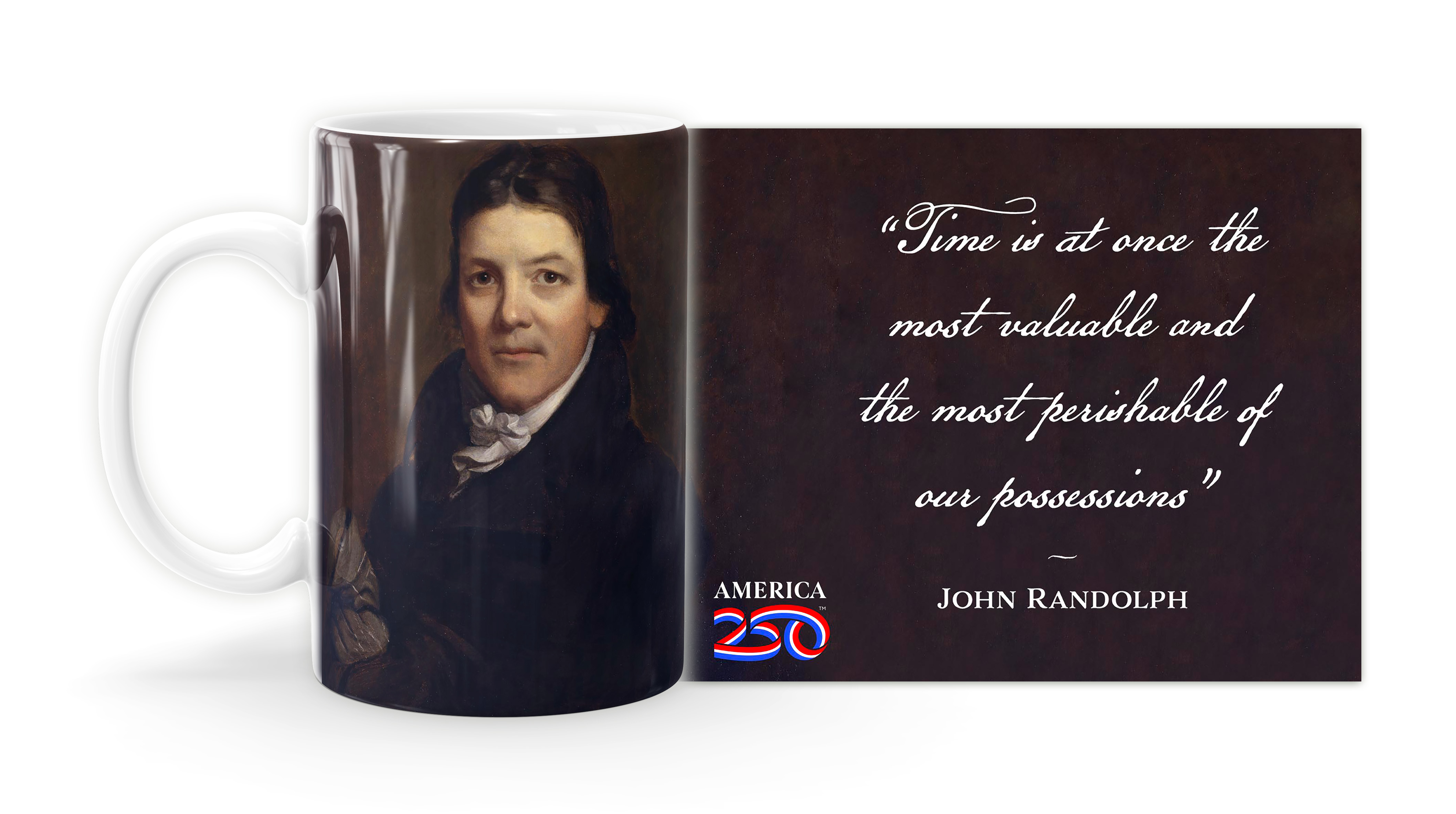 Enjoy your coffee, tea, and hot cocoa in this unique ceramic mug. This 15 oz. high quality coffee mug imprinted in our shops makes a great gift for any event or occasion! This mug features the John RandolphQuote "Time is at once the most valuable and the most perishable of our possessions."
