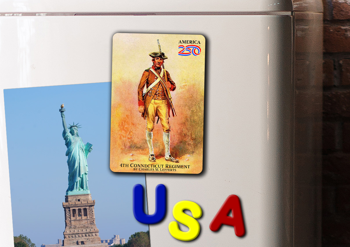 Show off your patriotism on your refrigerator, filing cabinet, or workspace with this glossy, durable magnet. This Magnet features the painting “4th Connecticut Regiment ”by Charles M. Lefferts.
