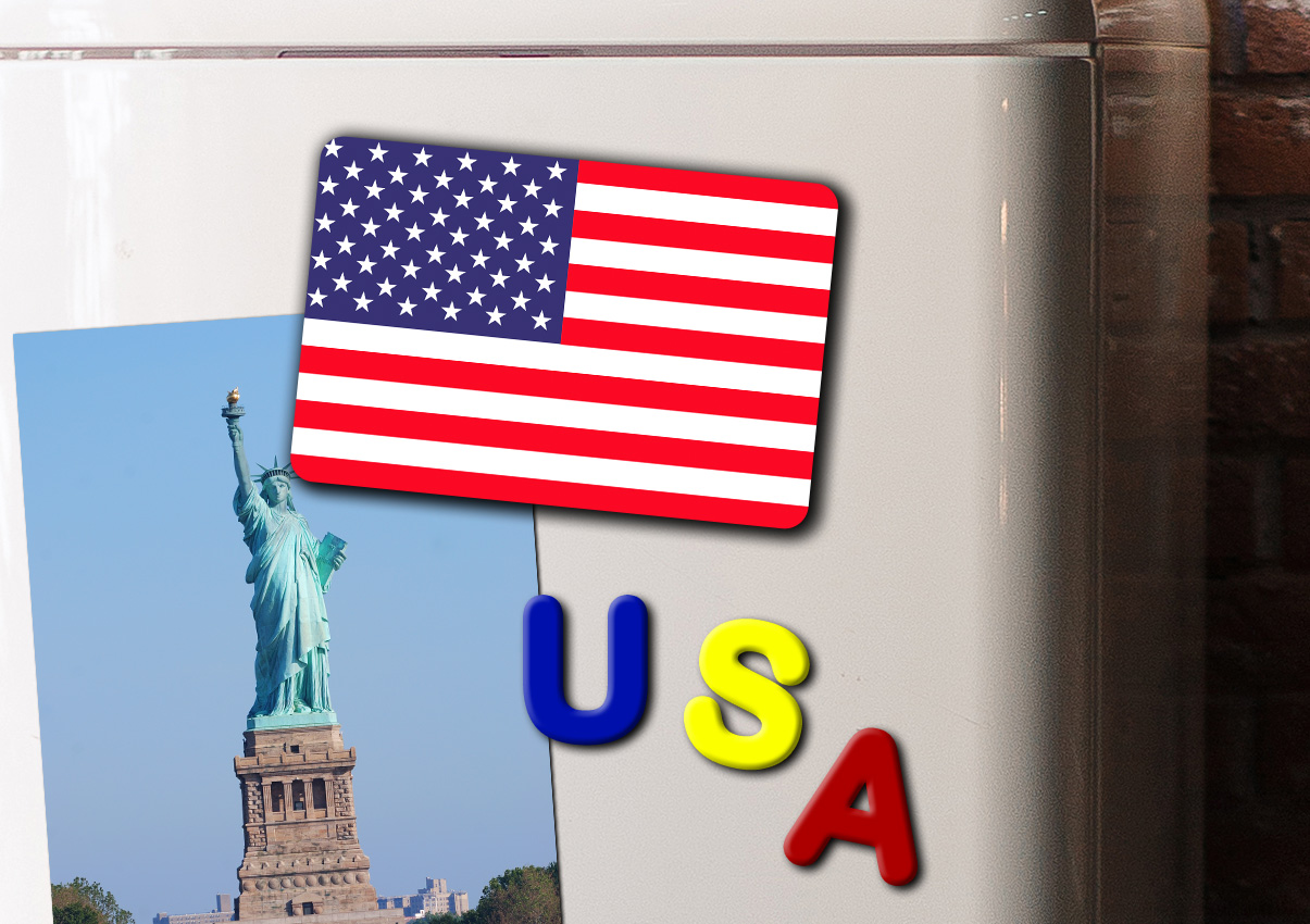Show off your patriotism on your refrigerator, filing cabinet, or workspace with this glossy, durable magnet. This Magnet features the American Flag