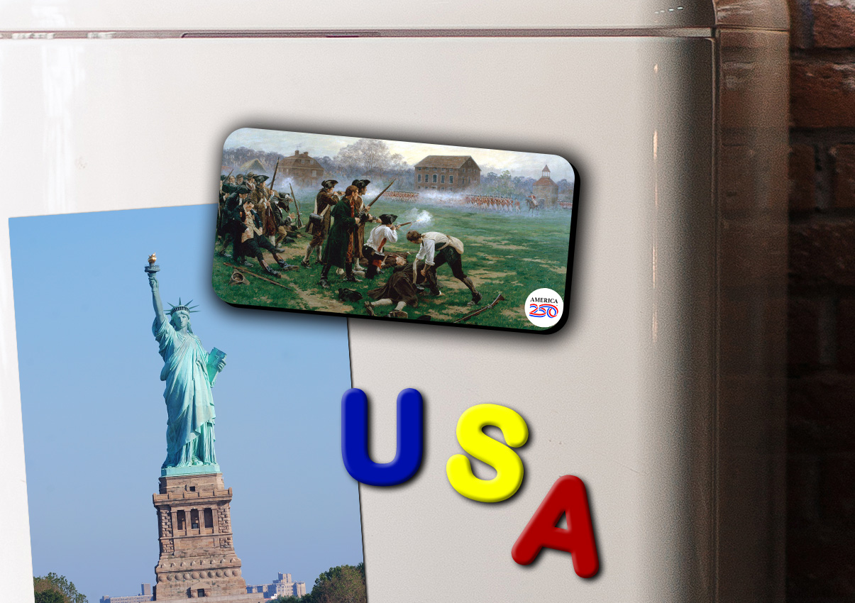 Show off your patriotism on your refrigerator, filing cabinet, or workspace with this glossy, durable magnet. This Magnet features the painting "The Battle of Lexington" by William Barnes Wollen.