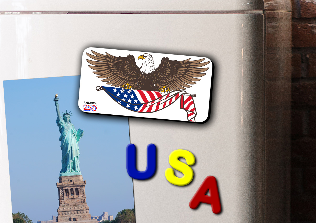 Show off your patriotism on your refrigerator, filing cabinet, or workspace with this glossy, durable magnet. This Magnet features a bald eagle holding the American Flag