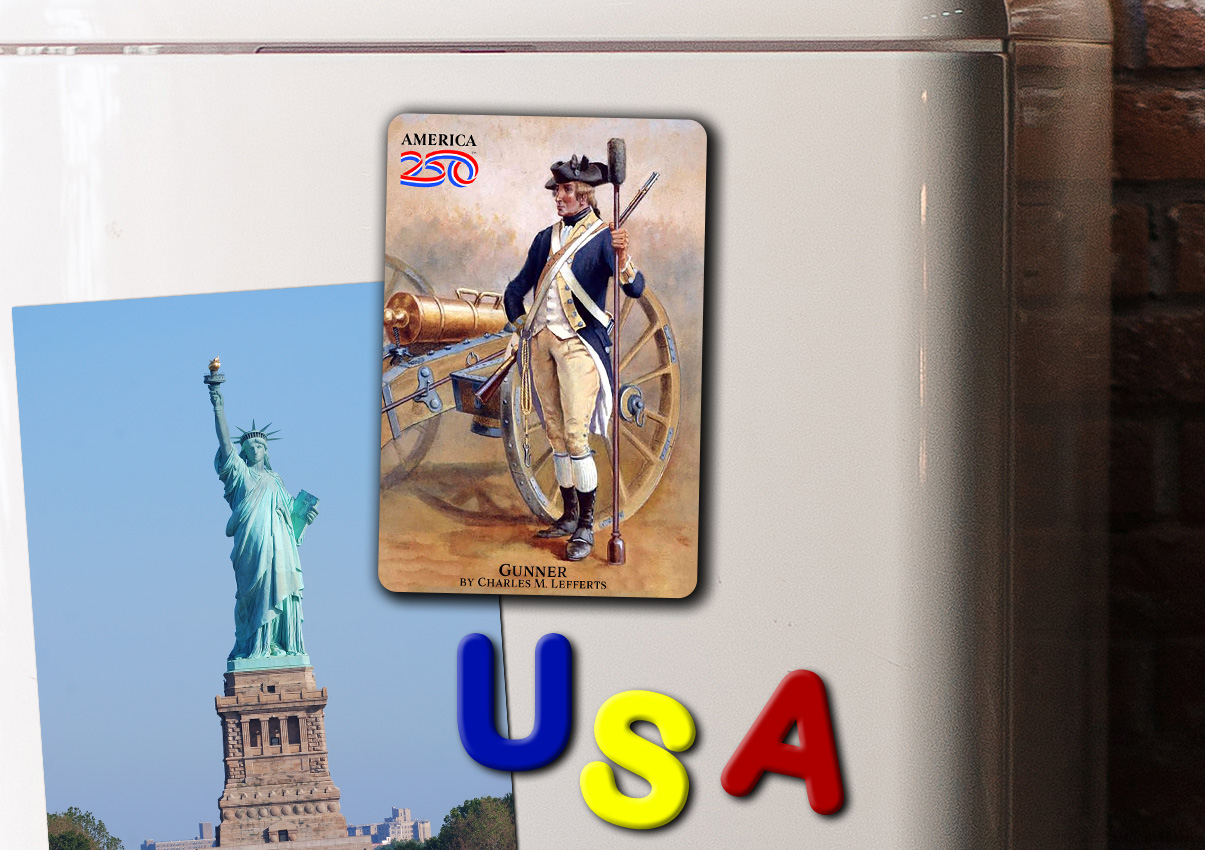 Show off your patriotism on your refrigerator, filing cabinet, or workspace with this glossy, durable magnet. This Magnet features the painting “Gunner”by Charles M. Lefferts.