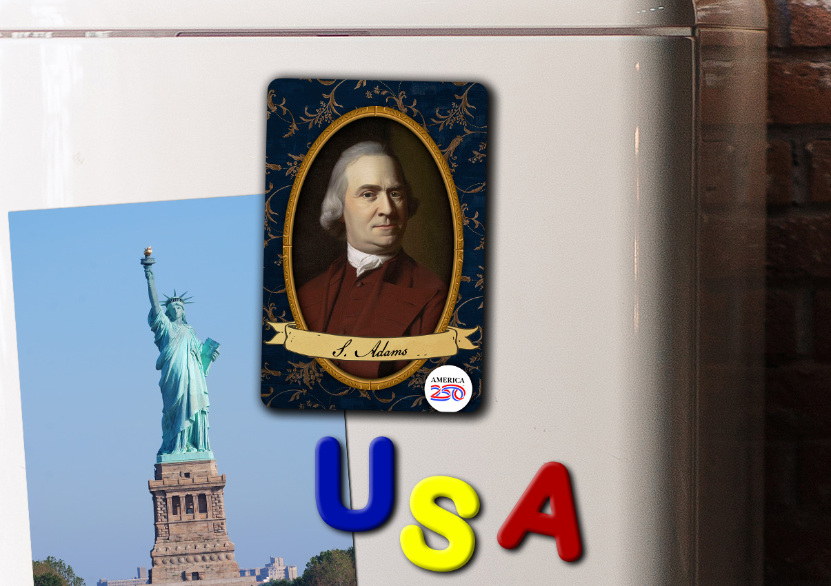 Show off your patriotism on your refrigerator, filing cabinet, or workspace with this glossy, durable magnet. This Magnet features a painting of Samuel Adams.