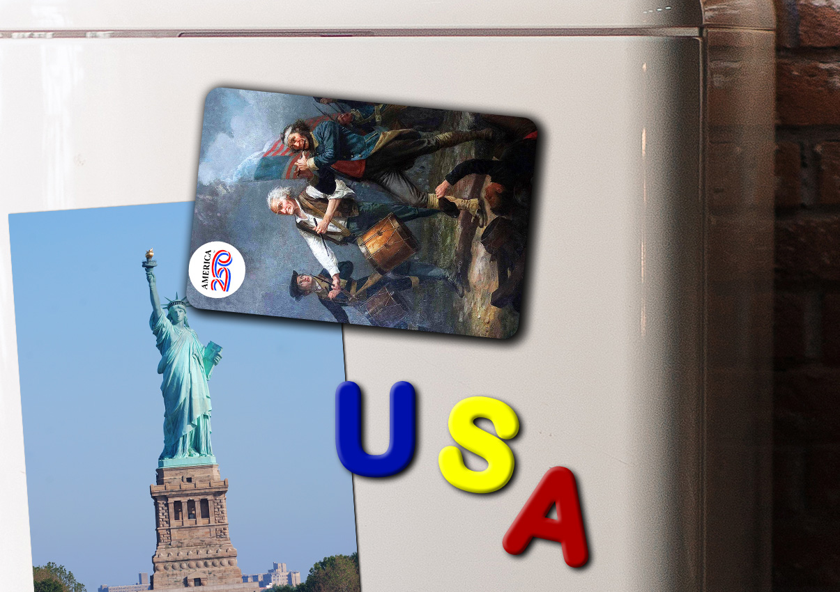 Show off your patriotism on your refrigerator, filing cabinet, or workspace with this glossy, durable magnet. This Magnet features the painting "the Spirit of '76" by Archibald Willard.