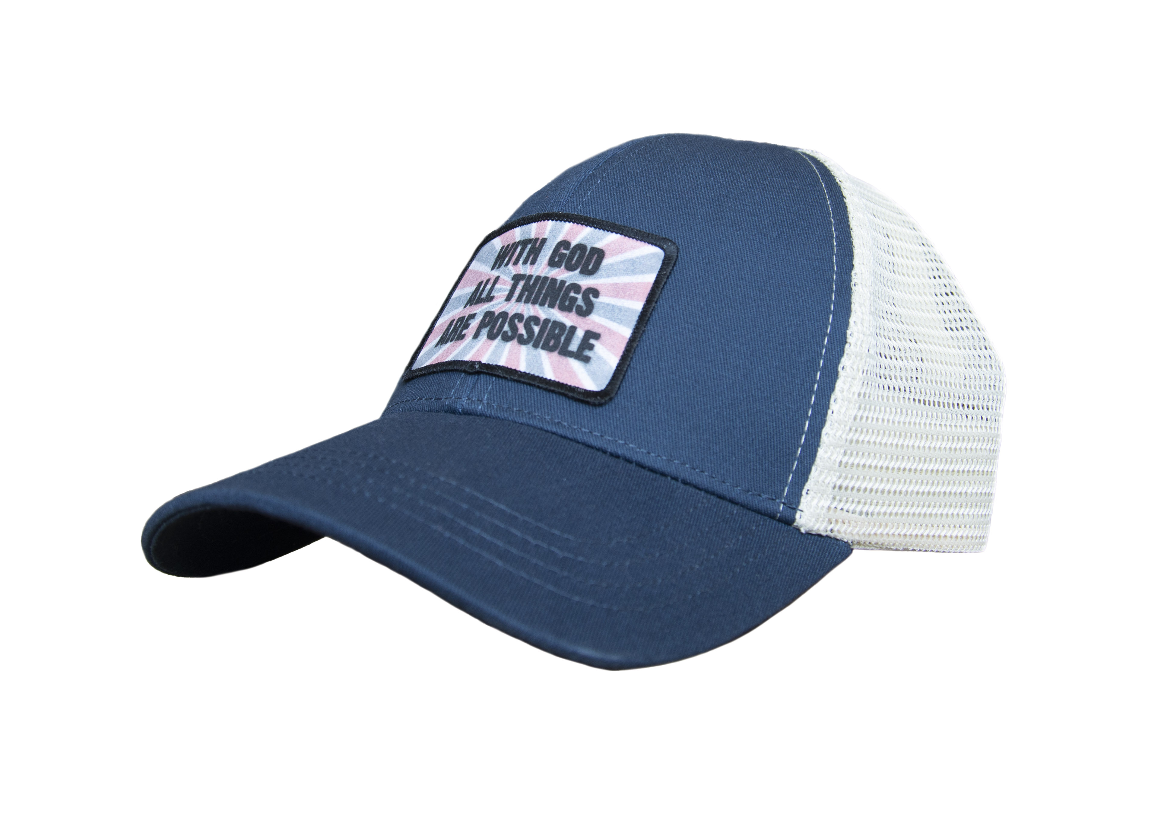 Proudly show off your patriotism with our new patch baseball hats! This hat features our "All Things Are Possible" iron-on patch to create a unique, eye-catching design! Most of our hats are made from a polyester and cotton blend. They are "one size fits all" with adjustable straps on the back. ( HAT-USA3 ) The AMERICA 250® word mark and logo are trademarks of the U.S. Semiquincentennial Commission and are used by Nelson Enterprises under license.