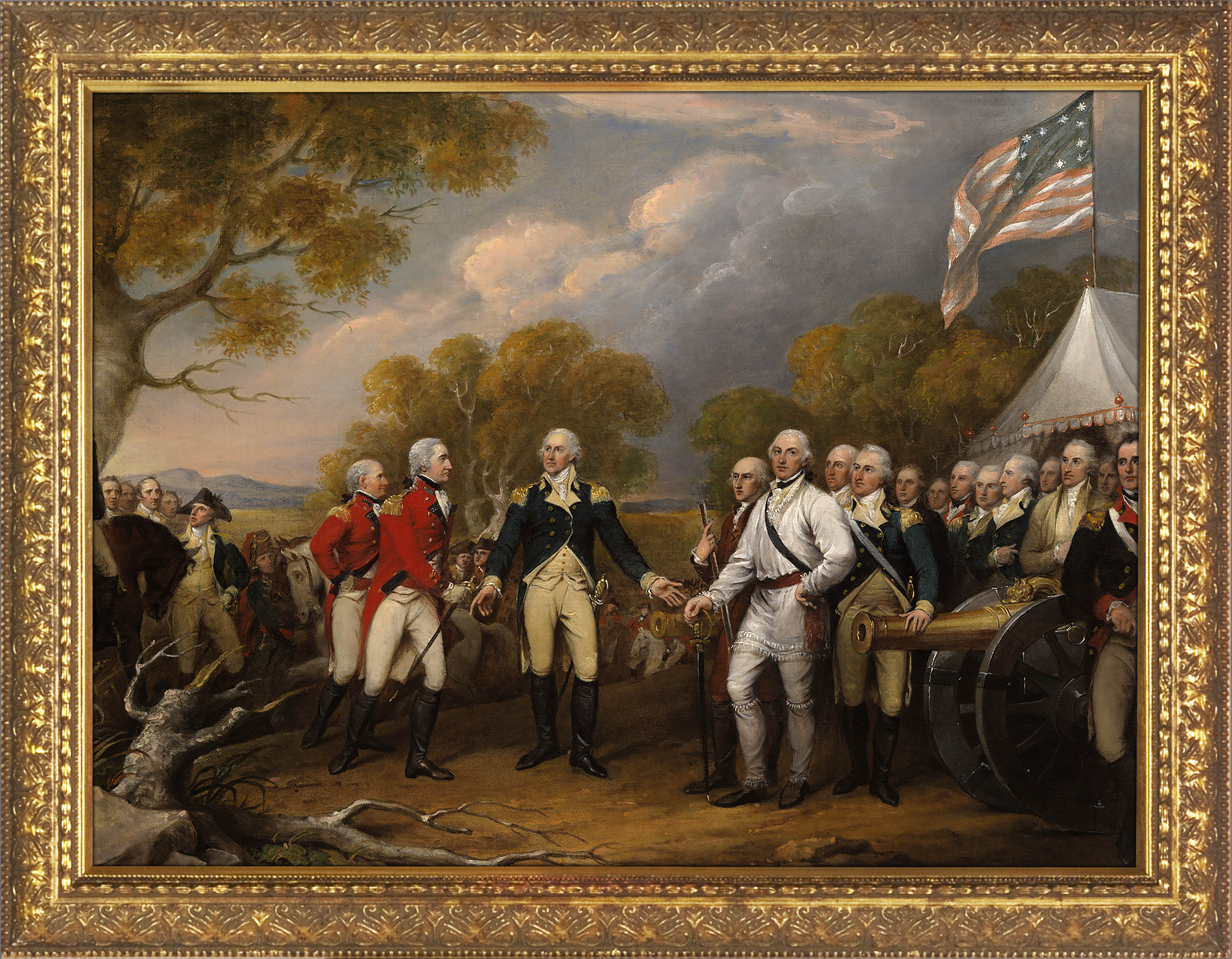 This framed canvas features Surrender of General Burgoyne, a painting by John Trumbull. Give as a thoughtful gift, or decorate your own home with a stunning piece on American history!