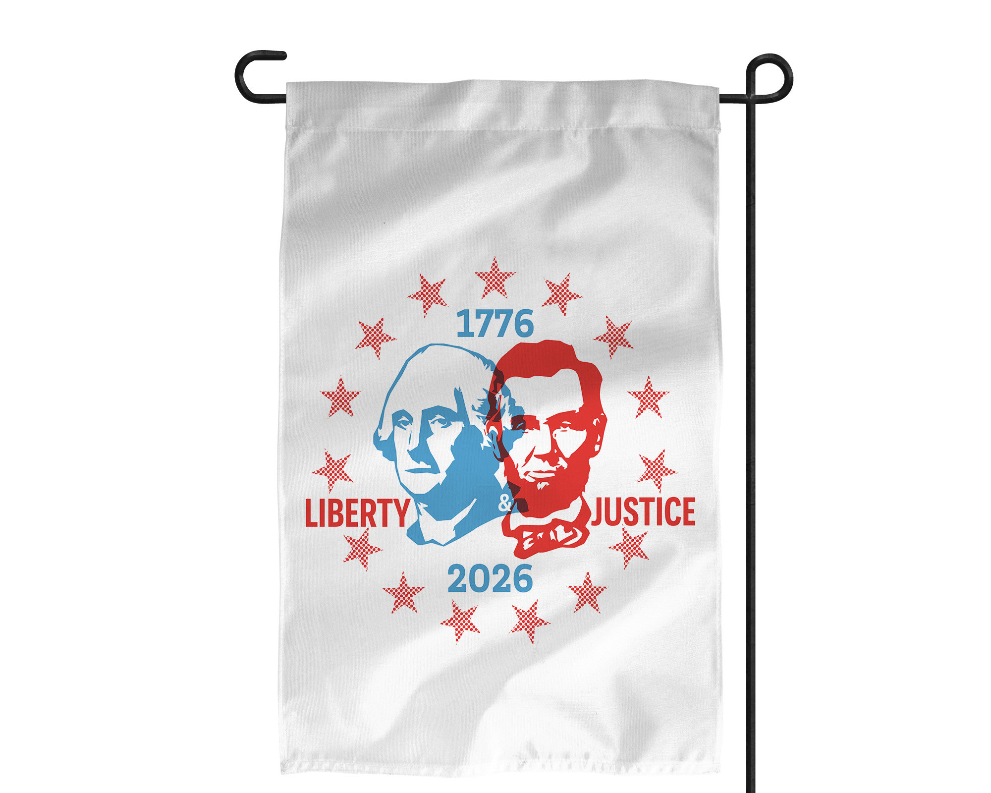 Celebrate America’s Semiquincentennial Anniversary (America’s 250th Birthday) with this commemorative flag. This flag features an illustration of George Washington and Abraham Lincoln.