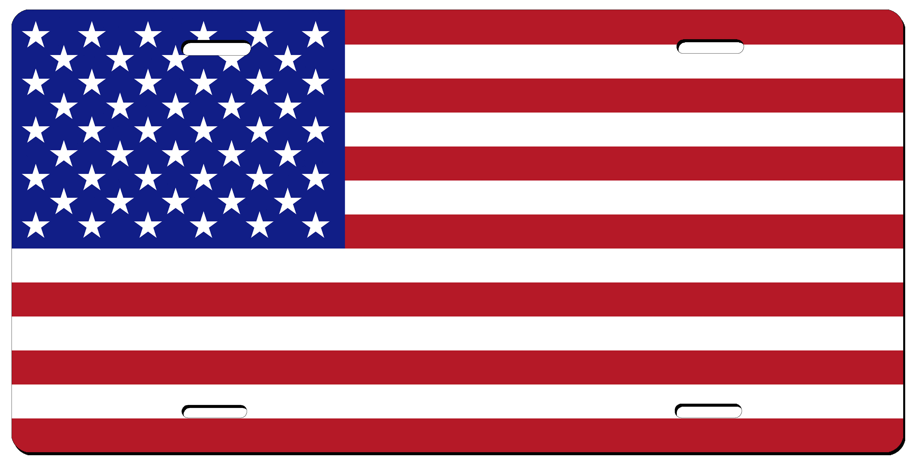 Take your patriotism to the streets, literally, with this unique, attractive license plate! Made in our shops, this high-quality, UV and weather resistant, 6"x12" glossy plate is the perfect addition to any vehicle and makes a wonderful gift! This license plate features an image of the American flag.